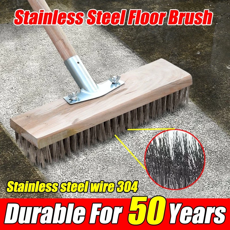 Stainless Steel Brush with Wooden Handle Durable Lightweight 30cm
